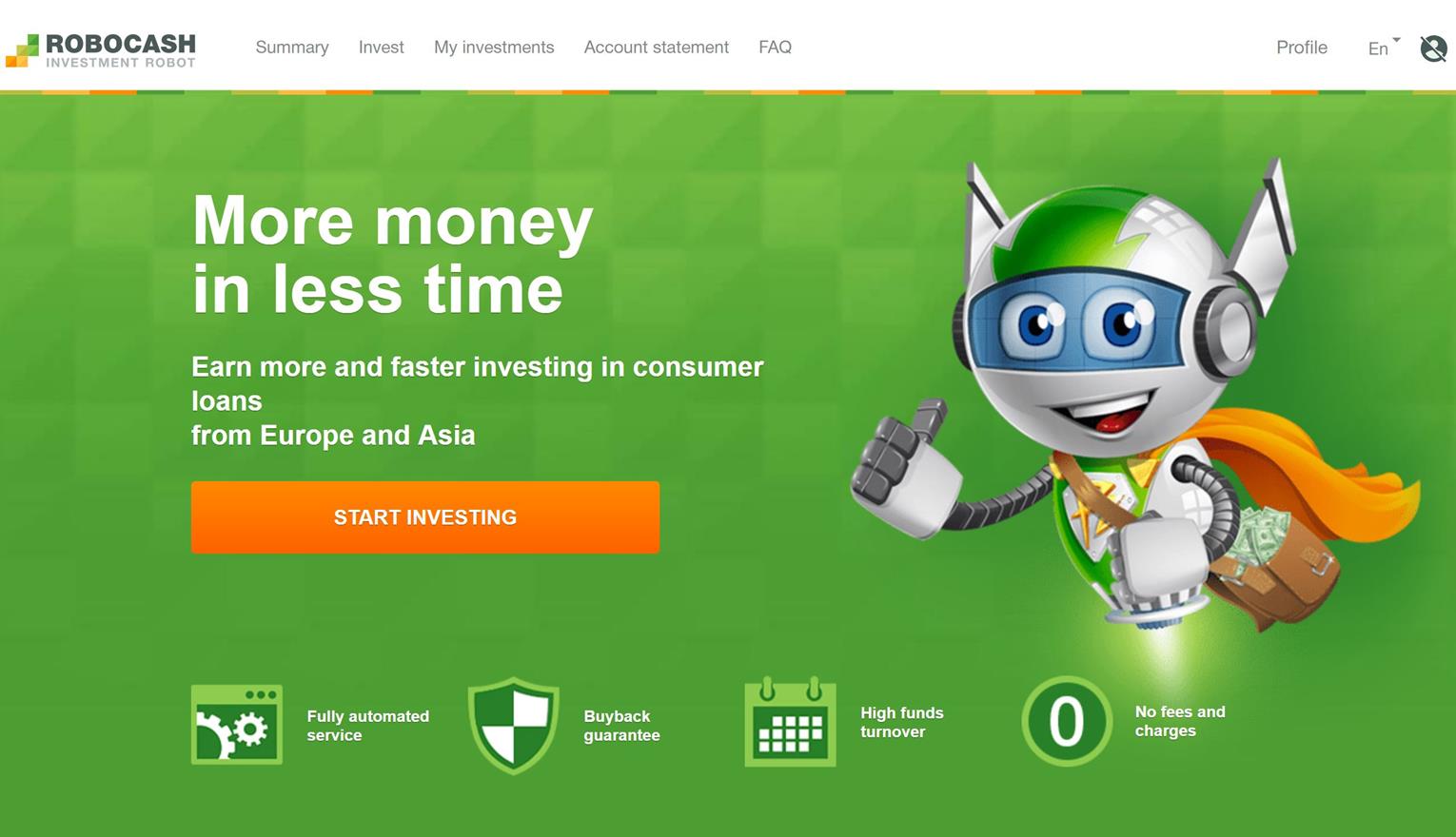 Een van de twee nieuwe platformen die ik aan mijn portfolio heb toegevoegd deze maand is Robocash. Het platform is gestart in 2017, maar de bedrijven achter het platform zijn al 9 jaar actief en winstgevend in Spanje, Rusland, Kazachstan, de Filipijnen, Indonesië en Vietnam. Je geld wordt automatisch geïnvesteerd, dit kan niet handmatig. De leningen hebben 12% rente, en buyback garantie na 30 dagen inclusief de opgebouwde rente. Je kan al investeren vanaf 10 euro.