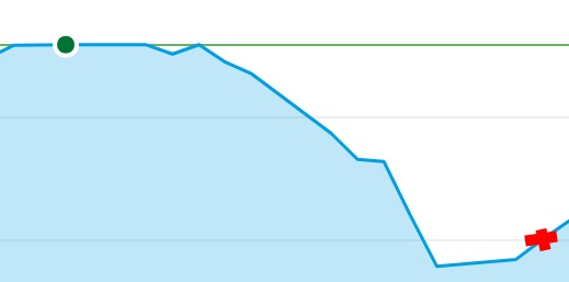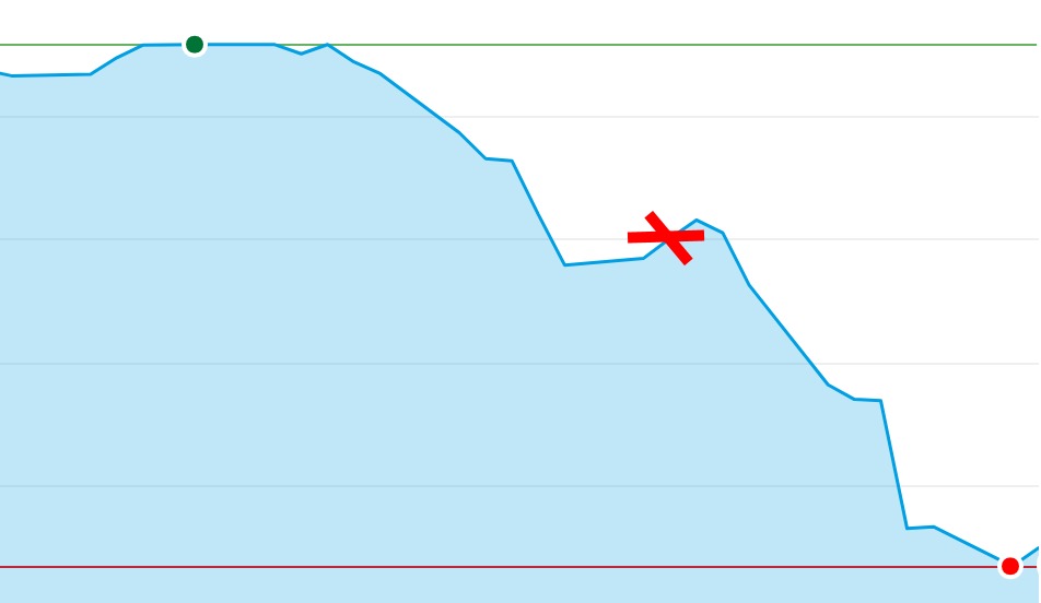 In de grafiek hierboven zie je de koersval, en het moment waarop ik ingestapt ben.