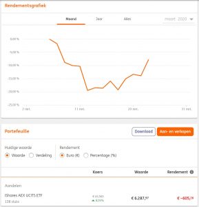 Na de berichten over de eerste besmettingen in Nederland daalde de beurskoersen enorm, met zo’n 15%. Daarna was te lezen dat beleggers van mening waren dat de gevolgen van Corona wel genoeg in de koersen verwerkt waren, en dat sommige aandelen ten onrechte ook een koersval gemaakt hadden. Daarna krabbelden de beurzen weer wat op. Dit leek mij een uitgelezen moment om in te stappen. Na een flinke koersval zou er op de korte termijn, en zeker op de lange termijn, een leuk rendement gehaald moeten kunnen worden.