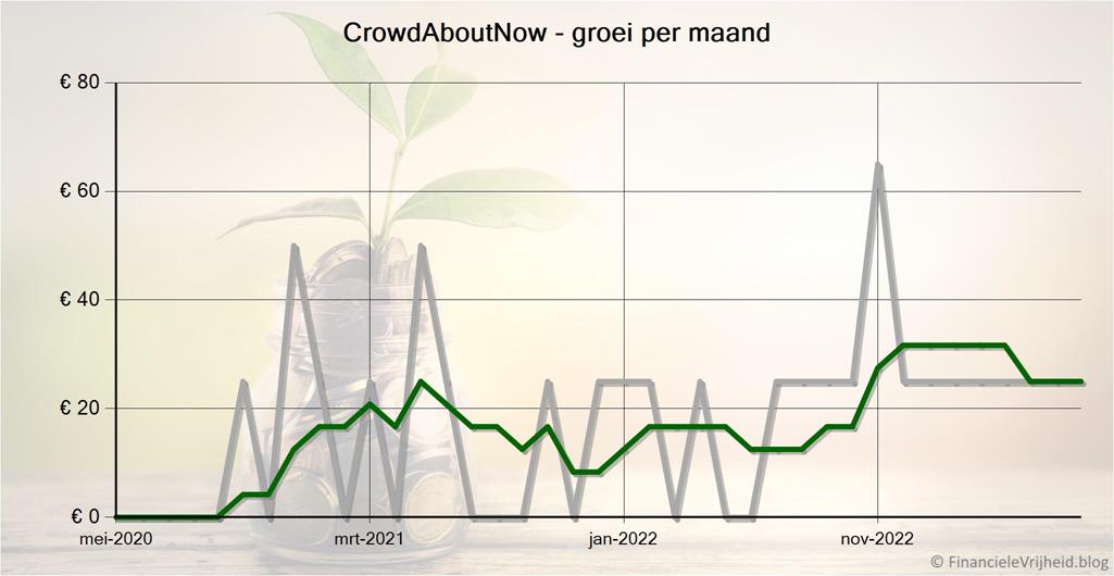 Bij CrowdAboutNow is mijn portefeuille de afgelopen maand met € 25,00 in waarde gestegen. Het gemiddelde rendement is nu 1,7%.