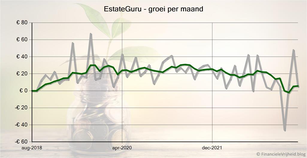 Bij EstateGuru heb ik afgelopen maand € 4,97 rente ontvangen. Het gemiddelde rendement is nu 9,2%.