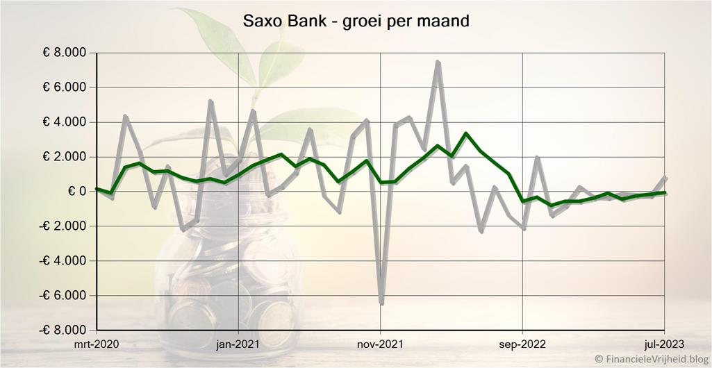 Bij Saxo Bank is mijn portefeuille de afgelopen maand met € 845,95 in waarde gestegen. Het gemiddelde rendement is nu 73,2%.