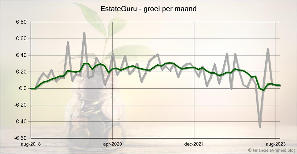 Bij EstateGuru heb ik afgelopen maand € 4,32 rente ontvangen. Het gemiddelde rendement is nu 9,0%.