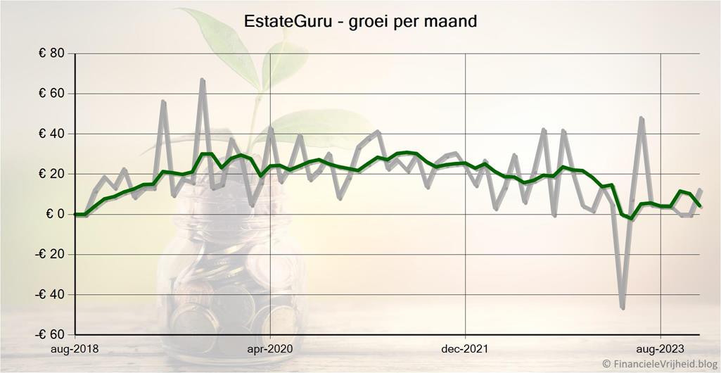 Bij EstateGuru heb ik afgelopen maand € 12,33 rente ontvangen. Het gemiddelde rendement is nu 8,8%.