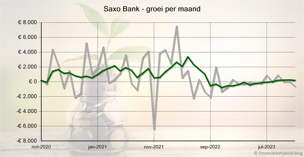 Bij Saxo Bank is mijn portefeuille de afgelopen maand met € 598,67 in waarde gedaald. Het gemiddelde rendement is nu 71,5%.