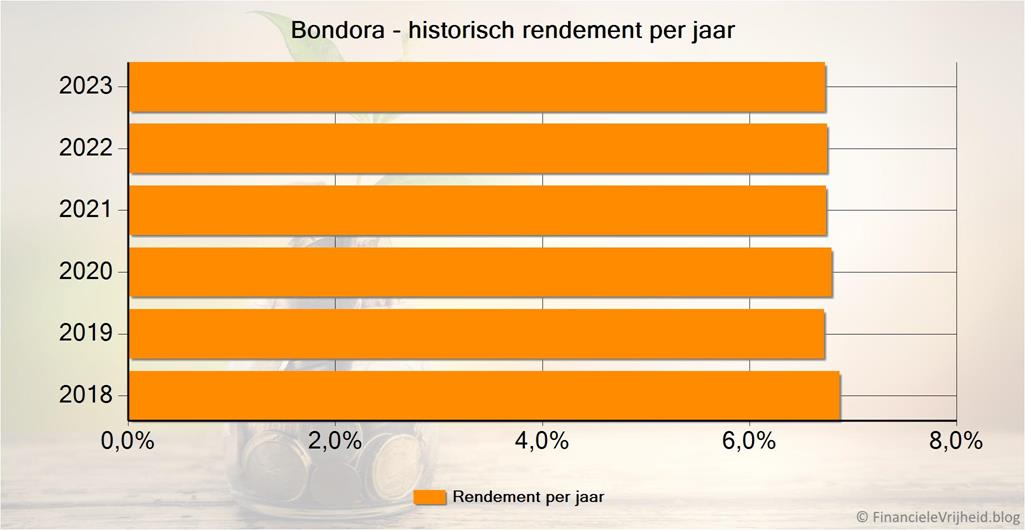 Zelf ben in sinds 2018 een zeer tevreden gebruiker van Go&Grow. Al die tijd heb ik dagelijkse rentebijschrijvingen gehad, resulterend in een zeer stabiel rendement van 6,75%. Dit is het maximum dat ze beloven voor Go&Grow, maar ik heb het in al die jaren nog niet lager gezien. De grafiek met de jaarlijkse rendementen hieronder laat dat ook wel zien.