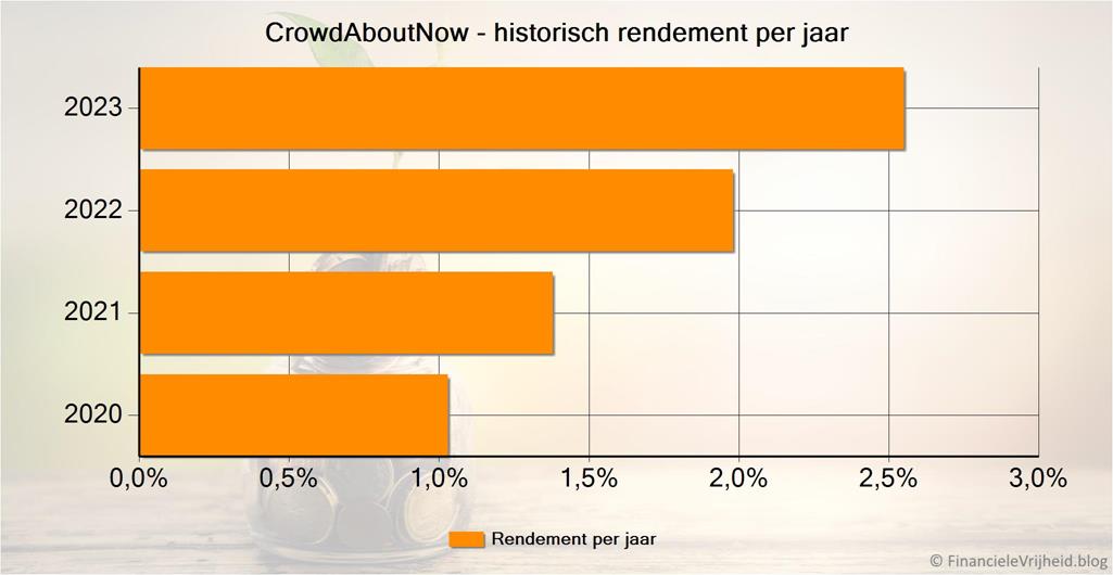 Bij CrowdAboutNow is mijn portefeuille de afgelopen maand met € 25,00 in waarde gestegen. Het gemiddelde rendement is nu 1,8%.