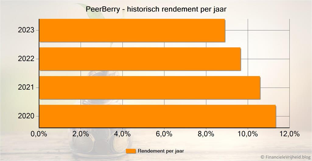 De rendementen bij PeerBerry zijn de laatste jaren wat aan het dalen, dit was me niet echt opgevallen in de normale grafiek met het historisch rendement.