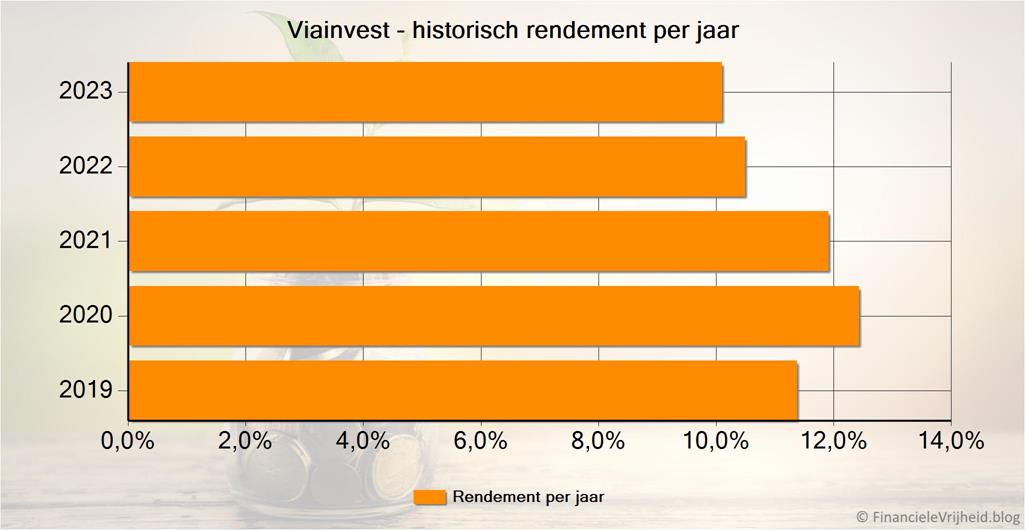 Mijn jaarlijkse rendement bij Viainvest loopt iets terug, maar al die jaren is het niet onder de 10% gekomen. Ook dit platform loopt soepel zonder dat ik er veel omkijken naar heb.
