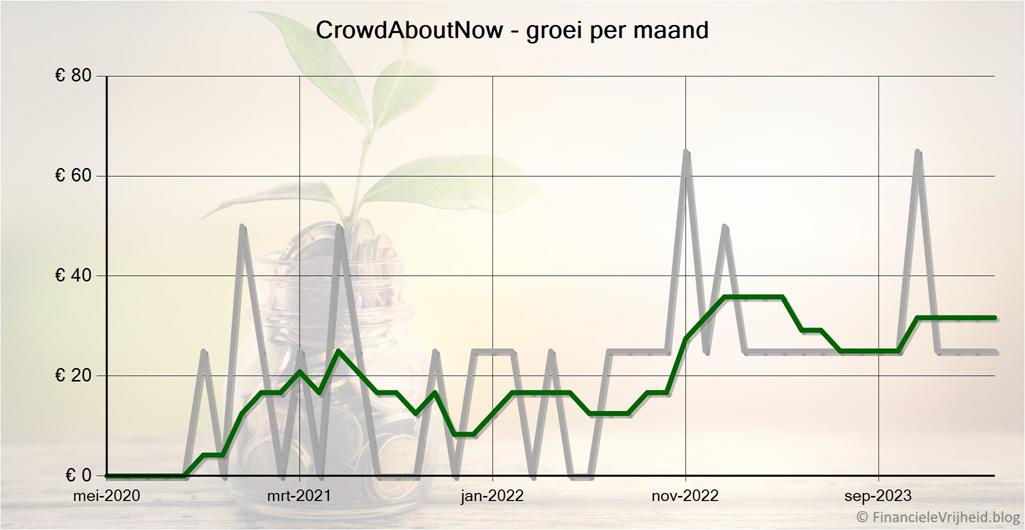 Bij CrowdAboutNow is mijn portefeuille de afgelopen maand met € 25,00 in waarde gestegen. Het gemiddelde rendement is nu 1,9%.