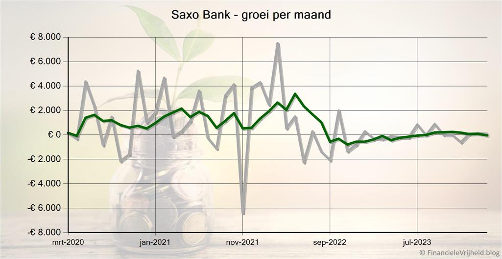 Bij Saxo Bank is mijn portefeuille de afgelopen maand met € 94,43 in waarde gestegen. Het gemiddelde rendement is nu 70,7%.