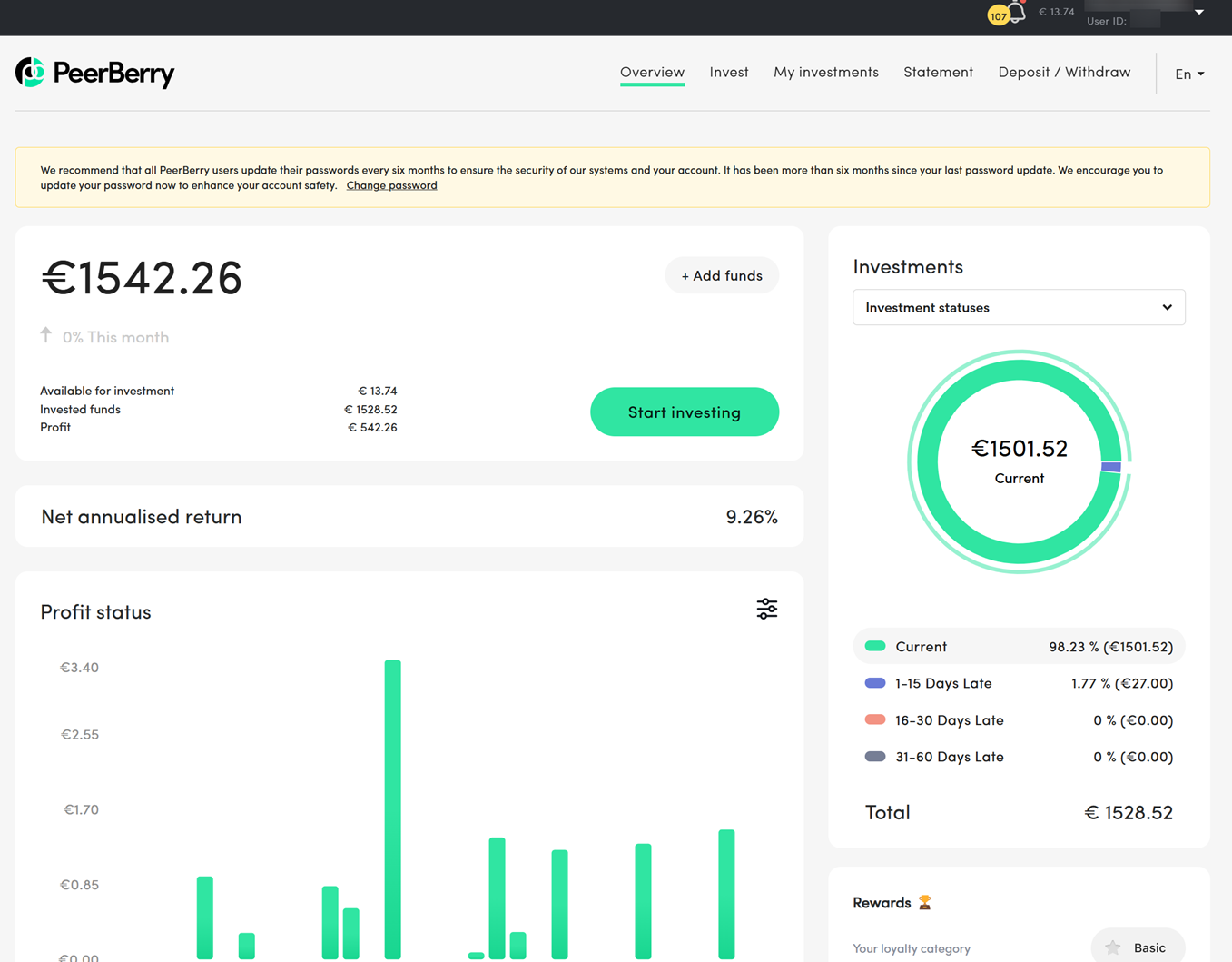 Op deze pagina zie je mijn inkomsten per maand bij PeerBerry en mijn accountoverzicht. Hiermee kan je een indruk krijgen van dit platform.
